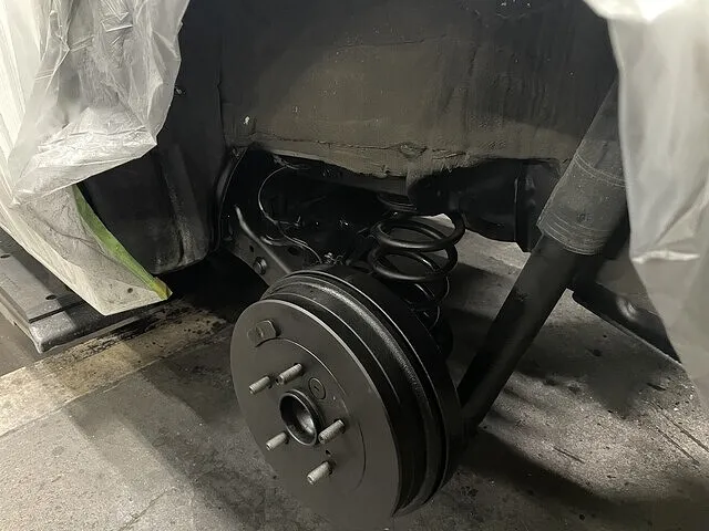 サビ止め塗装施工後です。足回りと下回り共にしっかりと施工させていただきました。中古車でもサビが少なければはがれる心配もございません!